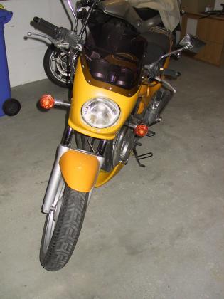 Baujahr 1996 | 62000 km | Vom Polsterer umgbaute Originalsitzbank,Stahlflexbremsleitung vorn und hinten,Frontverkleidung mit Scheibe und Motorspoiler von MBD,Mini-Gepäckbrücke. Neulack: Wüstengelb uni metallisiert. Lack ist nun komplett fertig! Für den Winter geplant: Klarglasscheinwerfer, LED-Blinker,LED-Rücklicht