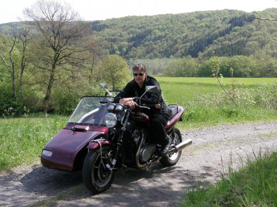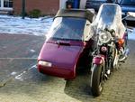 1994 Gesp, EML-Komplettumbau zum Gespann: Beiwagen: CT-2000 1,5-Sitzer mit Brembo- Scheibenbremse, Reifen 155/65-14, Cabrioverdeck, 30-Liter Unterflurtank, Radio, Gurte usw. Zugmaschine: Geschobene Schwinge mit EML-Federbeinen vorn, Koni- Federbeine mit Gespannfedern hinten, Reifen: 135/70-15 vorn, 155/70 15 hinten, geschraubte EML-Stahlfelgen, Drag Bar Lenker,Ochsenaugen, Harley- Scheinwerfer, Minispiegel, BSM-Future 2 in 1 linksseitig, Warnblinkanlage, Autobatterie im Beiwagen.