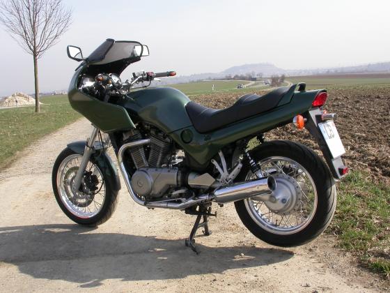 Halbschale von Schlier, Konis, Wirth-Federn, Rahmen spritzverzinkt und kunststoffbeschichtet, Stahlflex vorne und hinten, Kellermann Ochsenaugen, Motor 825 ccm (2. Übermaß), Corbin Sitzbank, WiWo Speichenräder, France-Equipment Bremsen hinten und vorne (handselektiert von hengo).