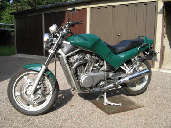 Kompletter Neuaufbau 2005 (auch Motor), Edelstahlkühlergrill, Edelstahlbremsleitungen, harte Federn, Miniblinker, viel Chrom, Tank innen versiegelt, Givi-Koffersystem